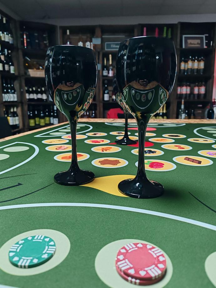 Verres, crachoir, mange-debout, plateaux de jeu, jetons, décoration d’ambiance etc